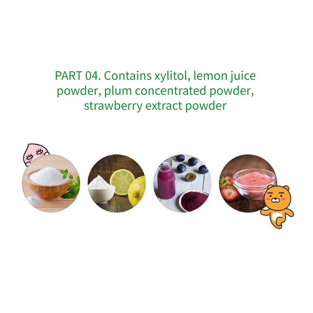 Glucose, vitamin C, lactose (lactose, dextrin), synthetic flavor (lemon flavor, lemon flavor powder), xylitol, magnesium stearate, citric acid, DL-malic acid, lemon flavor powder, plum concentrate powder, aspartame (sweetener), nicotinic acid amide, vitamin B 6 hydrochloride, berries extract powder, lemon juice powder, vitamin B 2※Contains milk